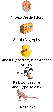 My father is Silvestre Enriquez Isidro. He was the second from the youngest of 3 siblings. He was born on December 31, 1915 in Orani, Bataan. His parents were the late Martin Isidro and Juliana de Jesus Enriquez. He died on May 2, 1989. My mother is Felicisima Banda Garcia. She was the oldest of 6 siblings. She was born on August 12, 1920 in Guagua, Pampanga. She was formerly a beauty queen of here birth place sometime in the 1930's. Her parents were the late Segundo Alincastre Garcia and Irene Banda. She died on February 11, 1988. My brother, Reynaldo, is the oldest among brothers and sisters. He was born on November 11, 1945. He was married to Truden Ruffy of Nasugbu Batangas. They had 4 siblings namely: Maria Bernadette, Juan Ferdinand, Leilanie and Martin Larry. My brother died on August 22, 1994 My sister, Flora dela Cruz, is second to the eldest. She was born on December 22, 1946. She is married to Teofilo V. dela Cruz and out of their wedlock, they had 3 siblings, namely: Geraldine, Julius, and Dominique. My sister now lives in Merville, Paranaque, Philippines. My sister, Amelia de Mesa, is third. She was born on June 11, 1947. She is married to Conrado Alcos de Mesa. They had two siblings, namely: Ronaldo and Anna Liza. My sister now lives in San Pablo City. My brother, Silvestre Jr., is fourth. He was born on January 31, 1949. He however died from a vehicular accident sometime in June 1956 at the age of seven. Another brother, Arturo, is fifth. He was born on June 25, 1956. He is married to Adoracion Catapang. They have two children, namely: Rommel and Ryan. They now live in Los Banos Laguna. Another brother, Benjamin, is sixth. He was born on September 21, 1958. He is marrried to Felicing San Valentine. The have three children, namely: Eric, Darius and Rona.. They now live in Los Banos Laguna. My parents told me before that we should have been 12 in the family had it not been for the unexpected abortion experienced by my mother which explains for the age gaps between myself and my brother, Benjamin. |